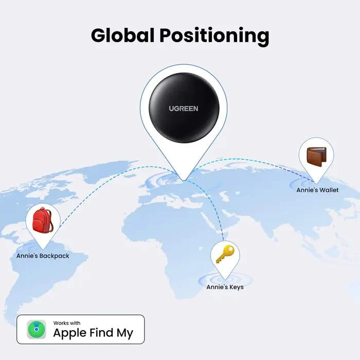 UGREEN CM520 SmartTag Finder — Apple Find My compatible Bluetooth tracker with sound alerts, global tracking, anti-tracking protection, and replaceable CR2032 battery