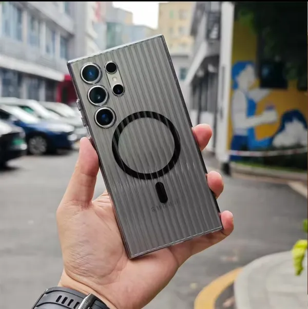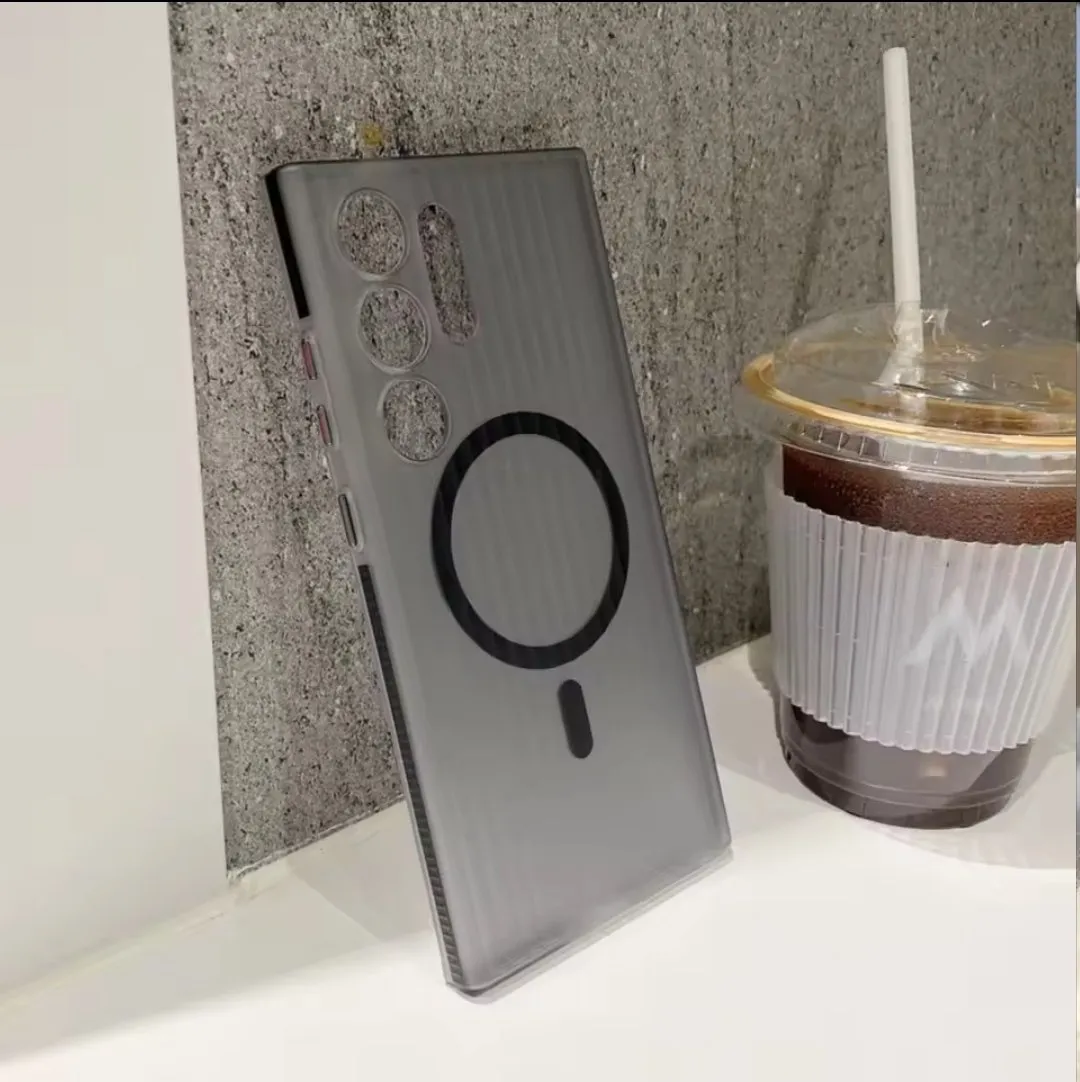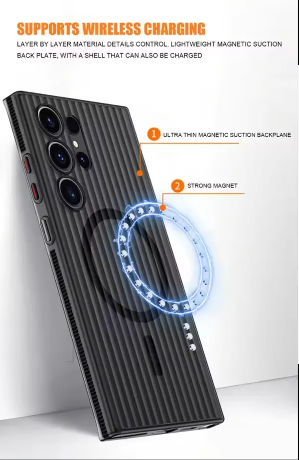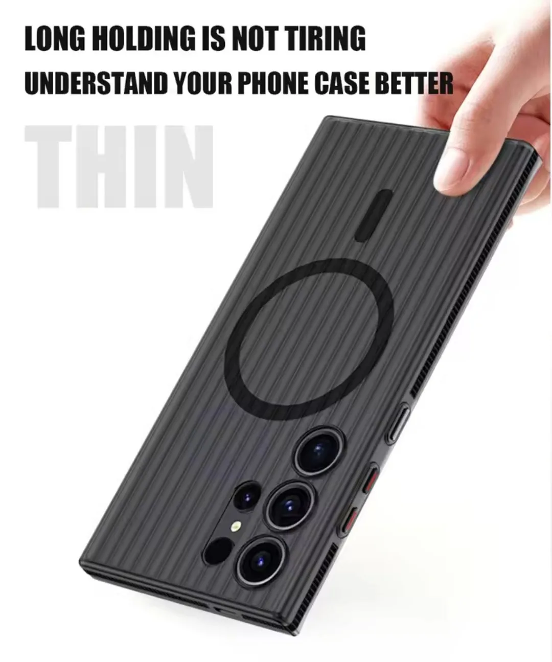 Wavy Pattern Anti-Slip Bumper Magnetic Wireless Charging matte Case for Samsung Galaxy S24 Ultra,S25 Ultra