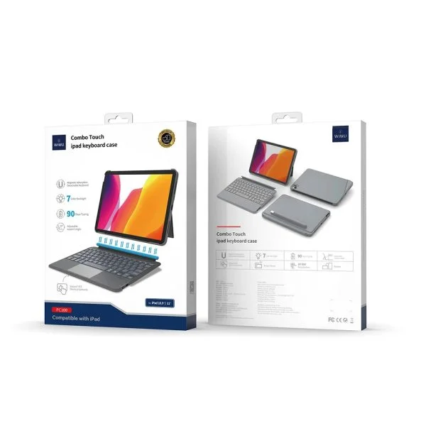 WiWU Combo Touch Keyboard Case for iPad Strong Magnetic Adsorption Wireless Bluetooth Keyboard with Backlight Stylus Pen Slot