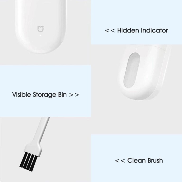 - Exquisite Details: Hidden Indicator + Visible Storage Bin + Clean Brush
